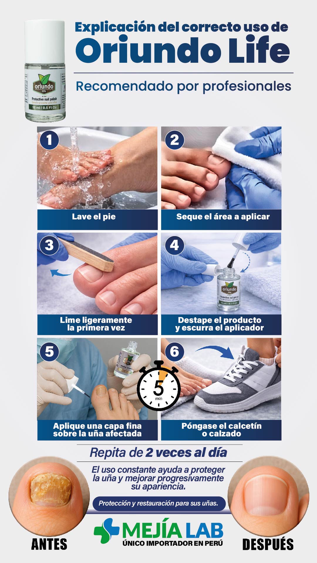 Oriundo es una fórmula especializada que protege y cuida las uñas, ayudando a prevenir y combatir hongos de manera eficaz. Su acción antimicótica y antibacteriana crea una barrera protectora, mientras hidrata y mantiene la uña en óptimas condiciones. Ideal para lucir uñas fuertes, limpias y saludables todos los días.